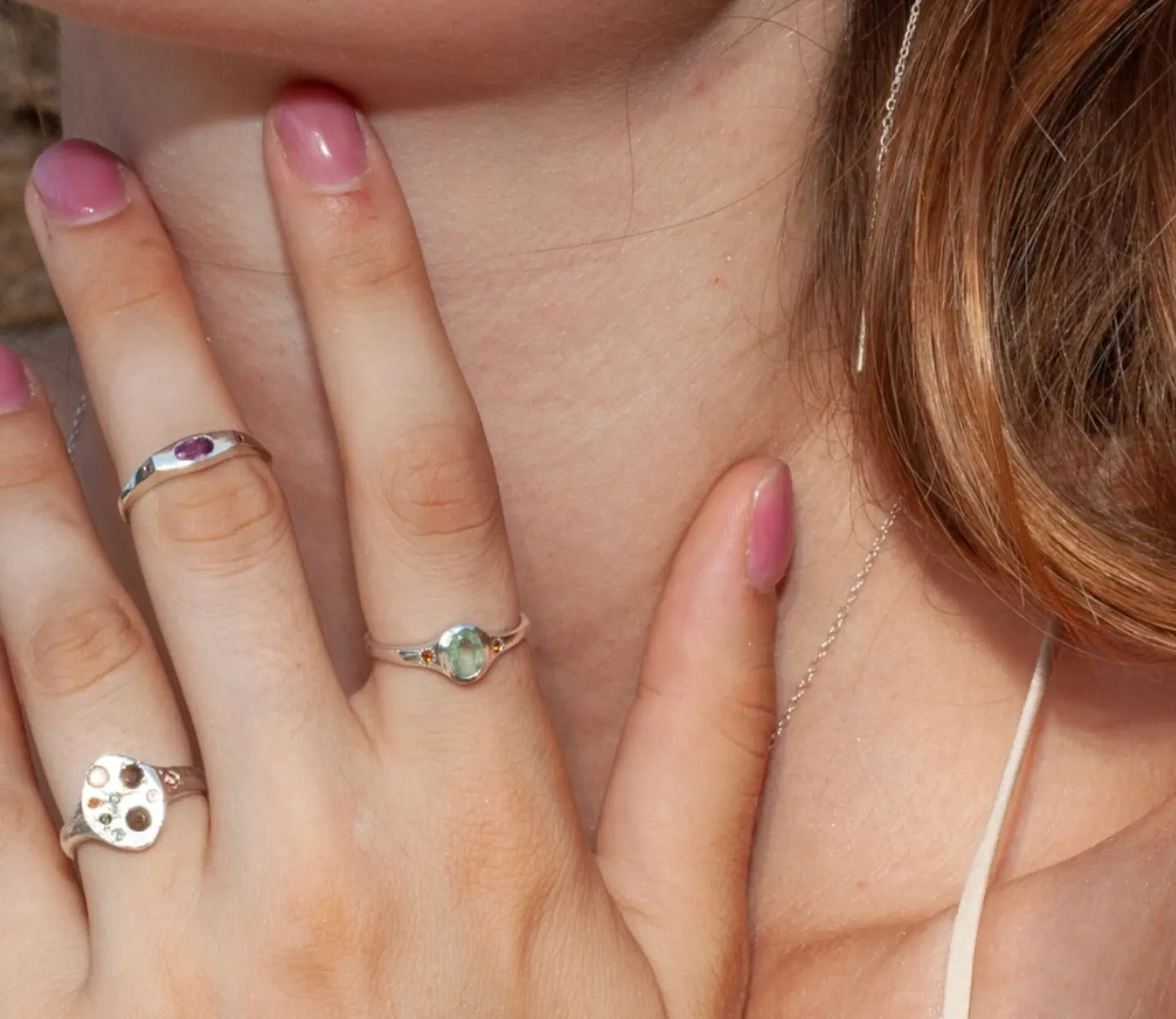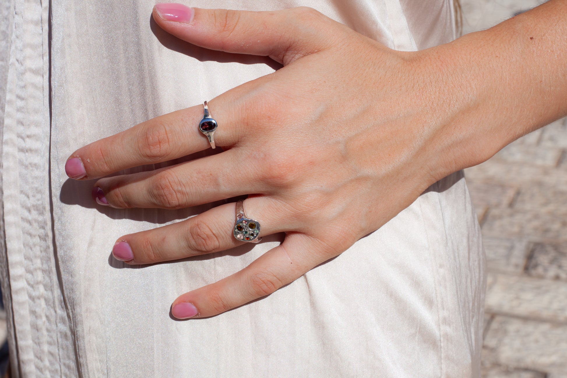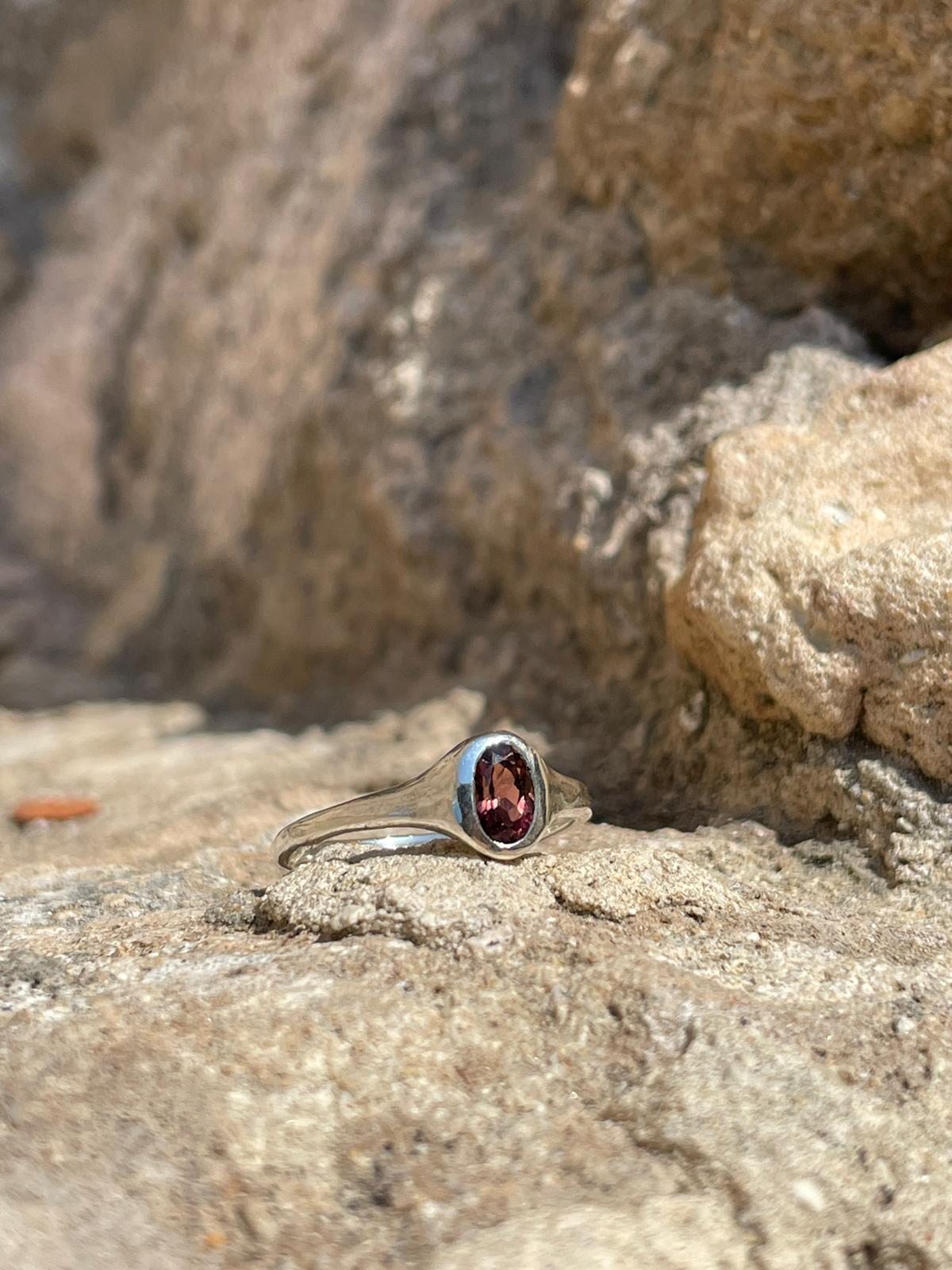 טבעת גבוהה הנעשית בעבודת יד מכסף 925, בעלת שיבוץ מרכזי של טורמלין טבעית בעלת צבע יחודי.