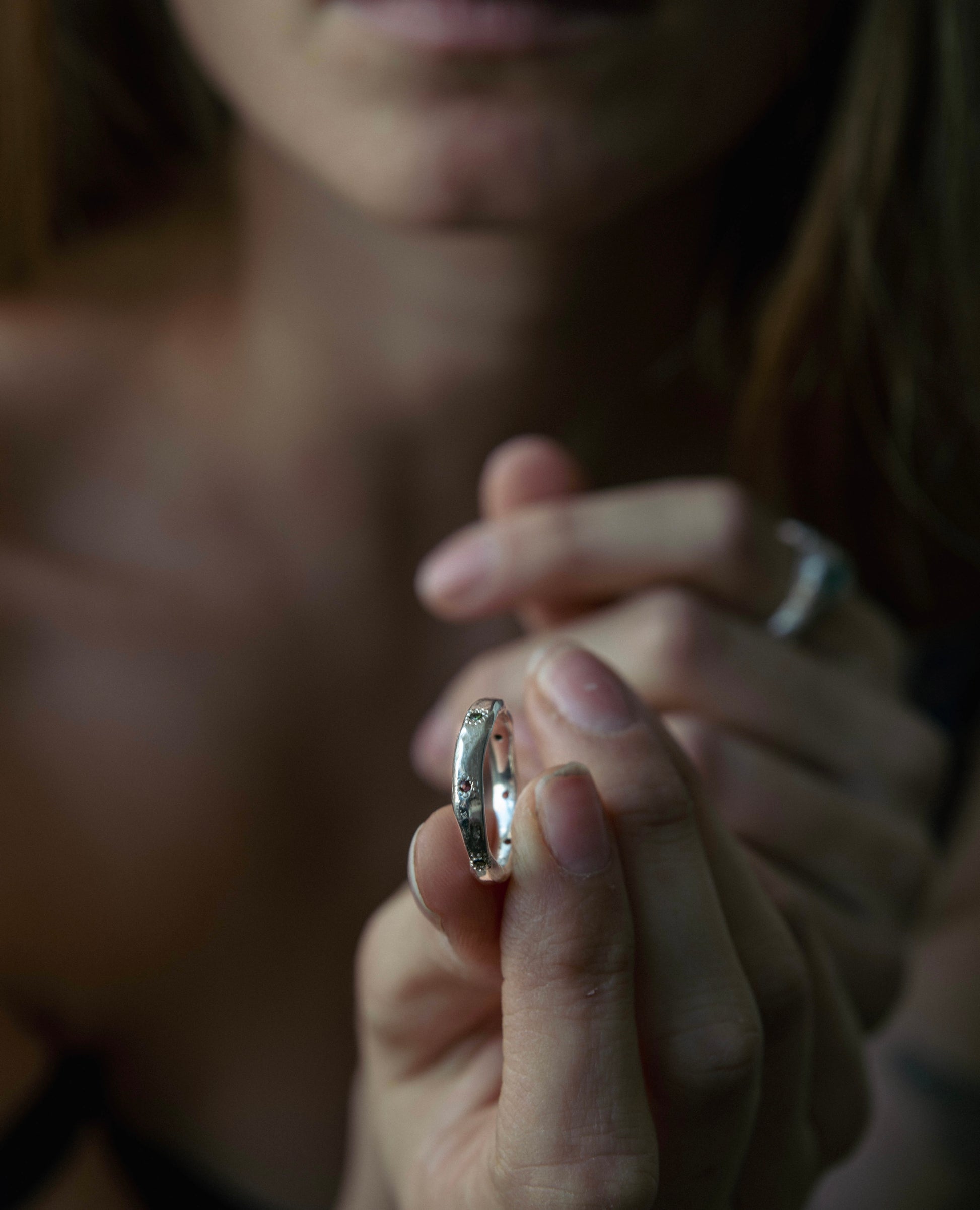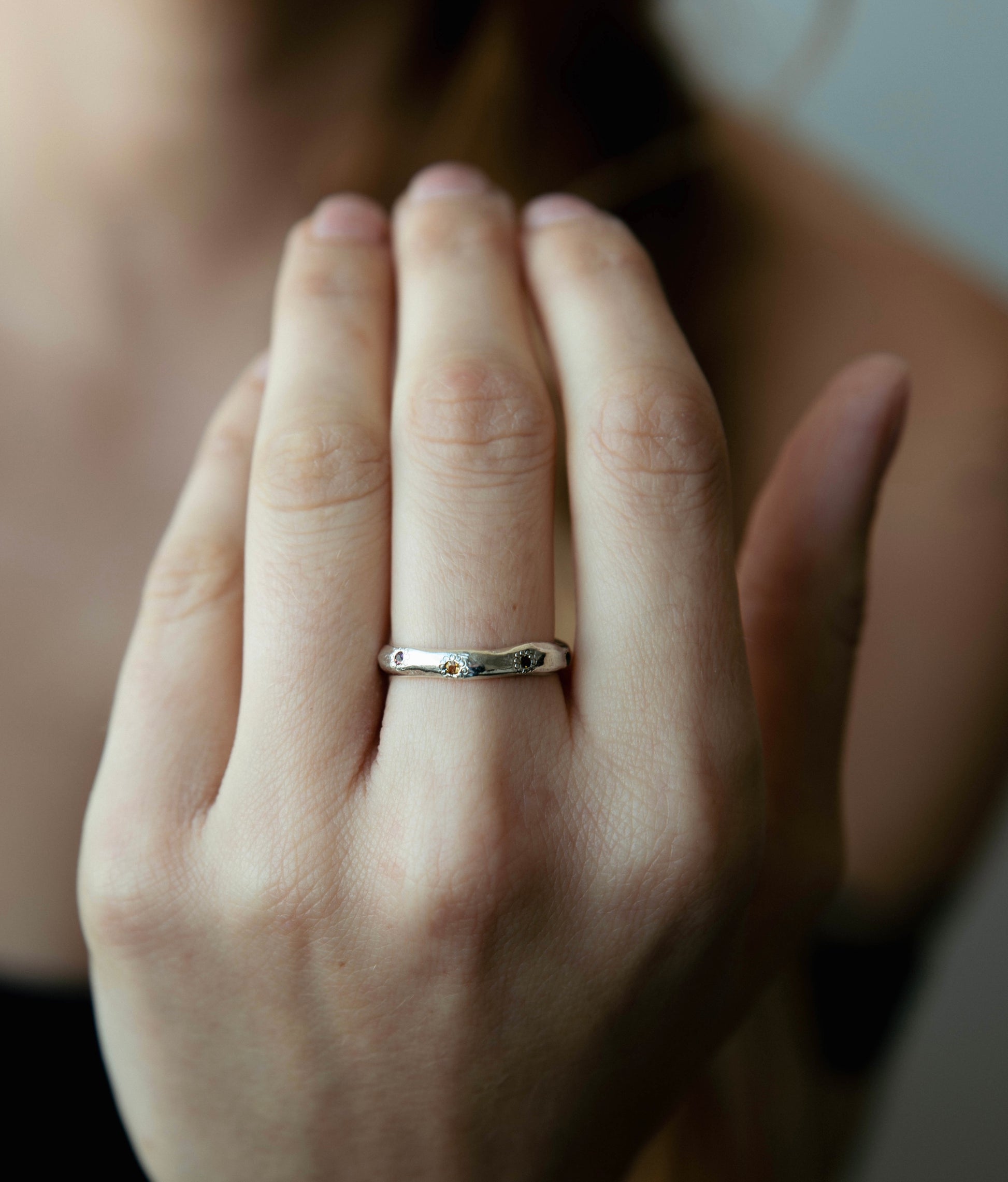 את הטבעת ניתן לשלב עם עוד טבעות על אותה אצבע וליצור את אפקט השכבות כמו בתמונה השנייה