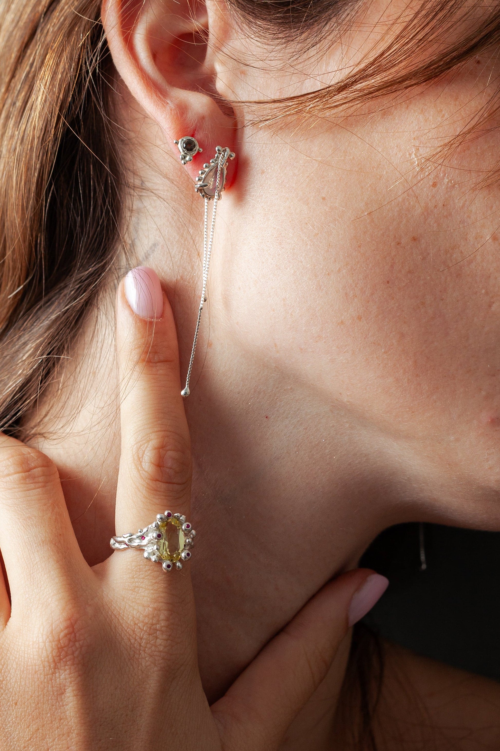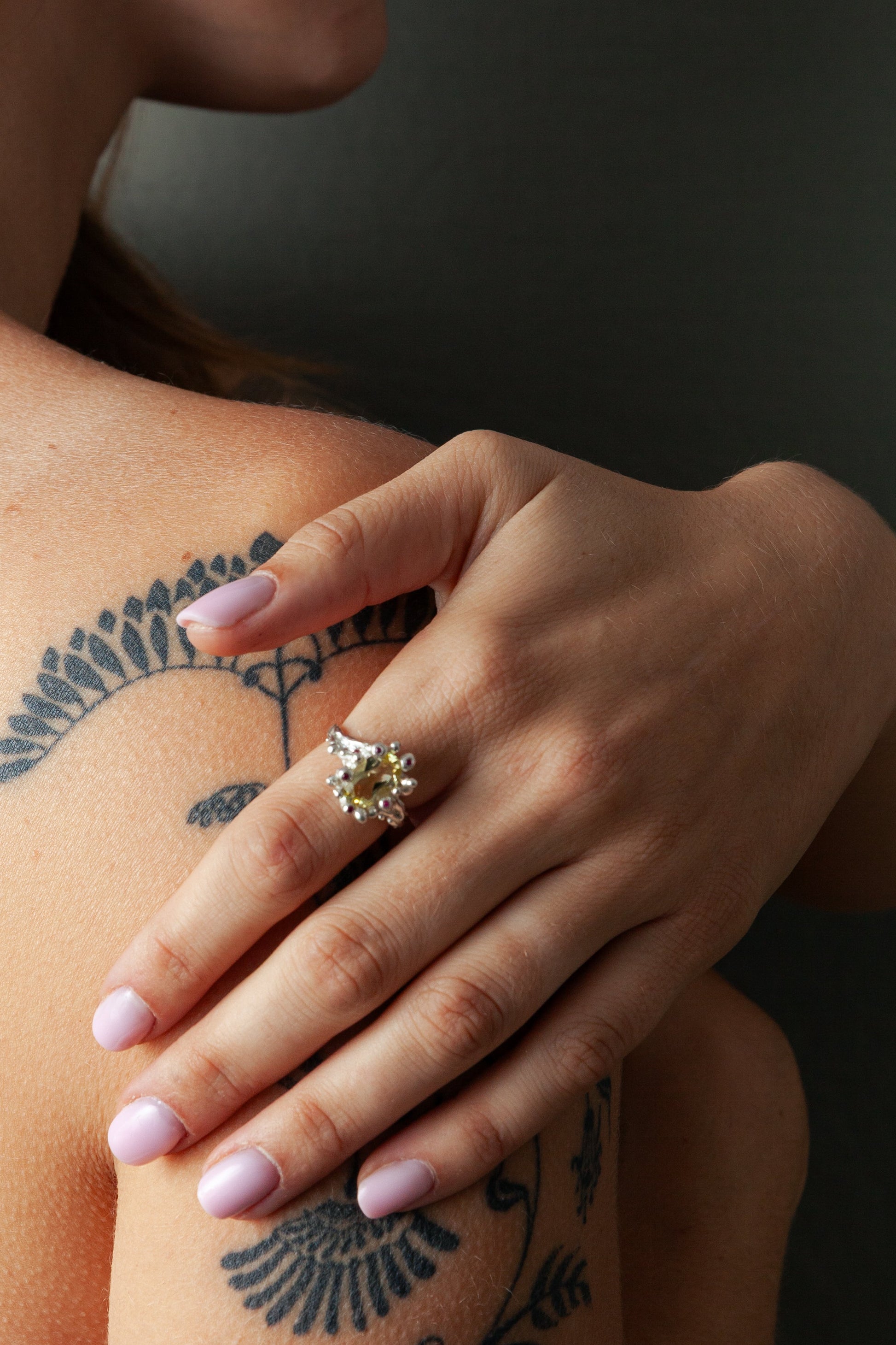 טבעת שונית, טבעת מיוחדת במינה מעוצבת בצורה של שונית מרתקת מתחת למים. עשויה בעבודת יד מכסף 925 ומשובצת באבני חן טבעיות.