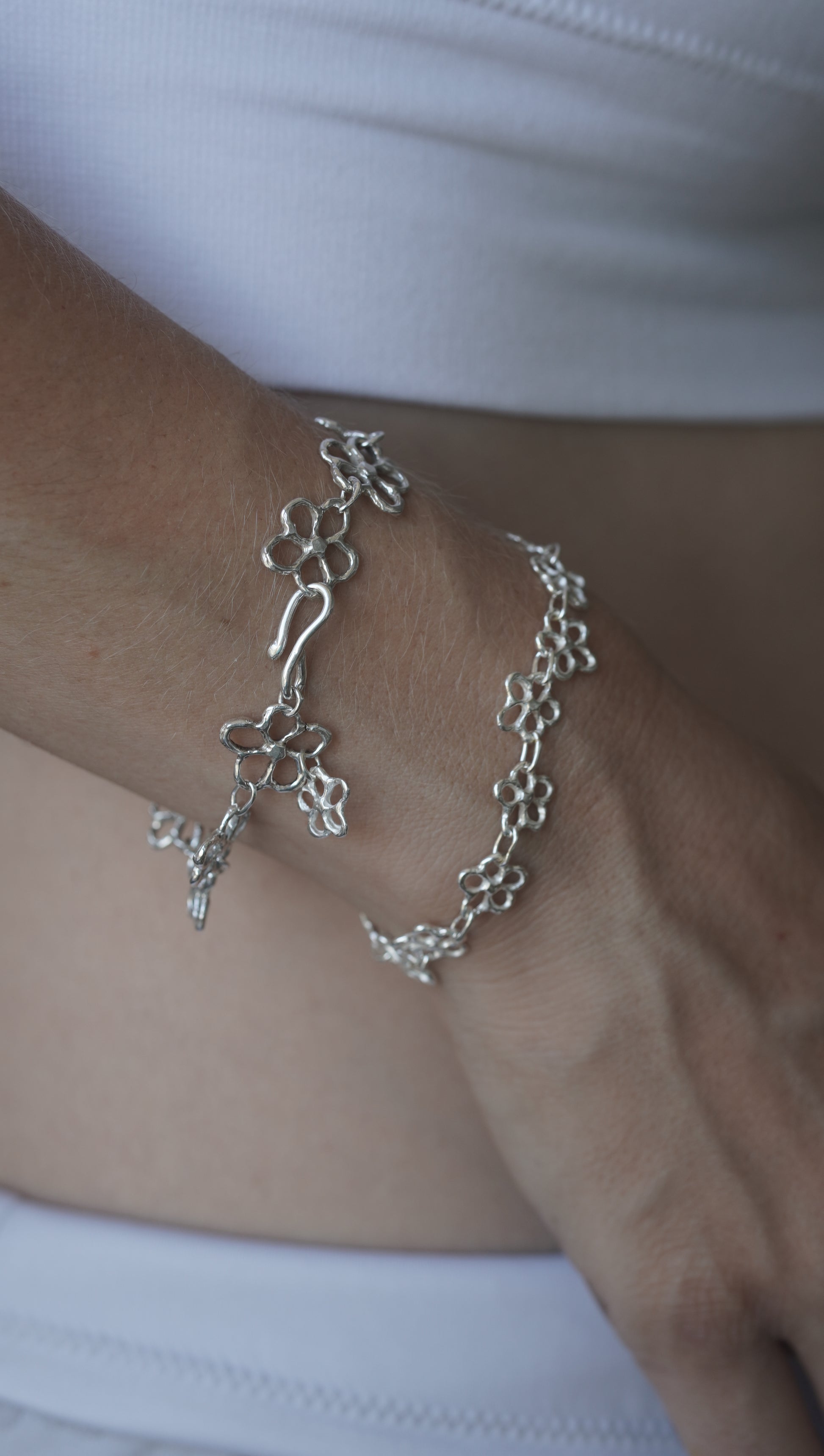 צמיד פרחים קטנים עשוי בעבודת יד מכסף 925, הפרחים נוצרו בטכניקת פיסול בשעווה.