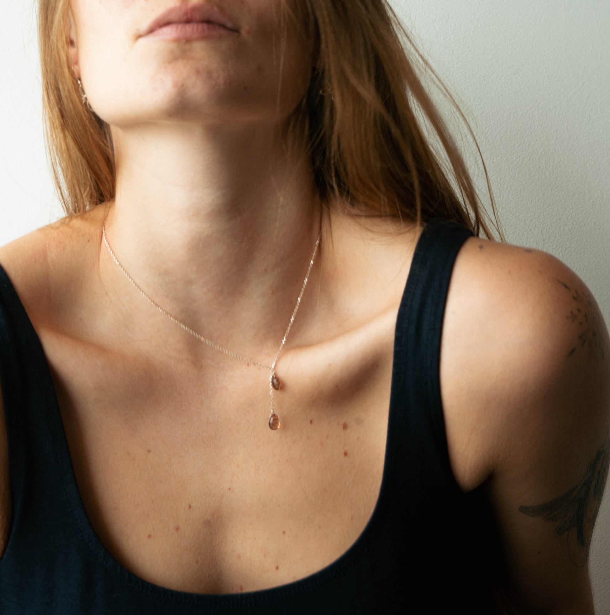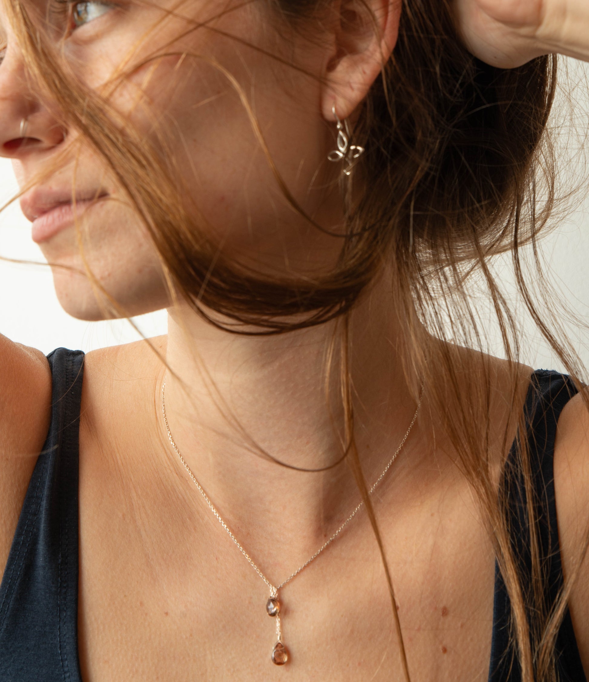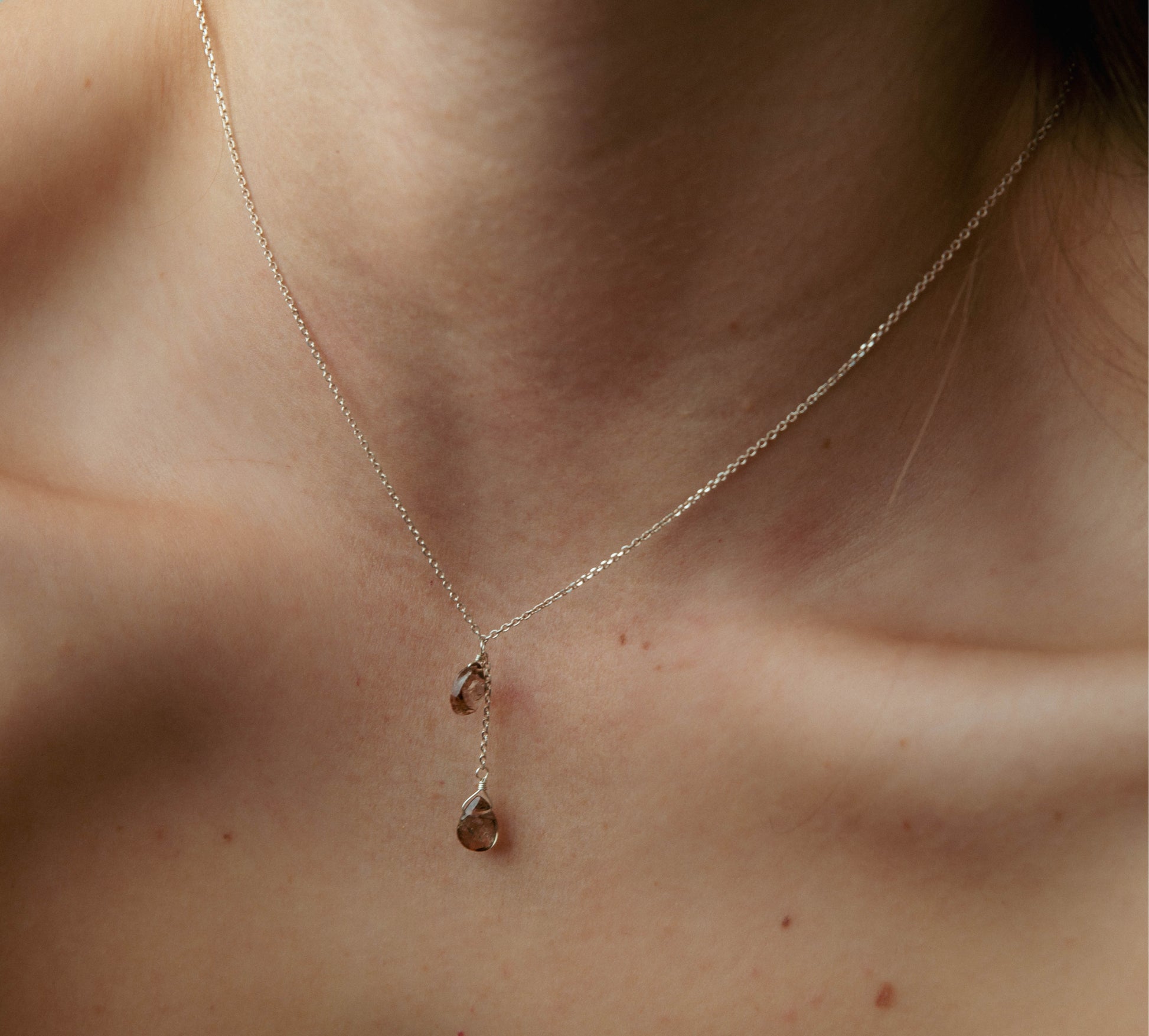 שרשרת טיפות גרנט עשויה מכסף 925, לשרשרת שזורה טיפת גרנט טבעית וילדה שזורה בנוסף שרשרת קצרה באורך של 3 ס"מ אליה שזורה בקצה עוד טיפת גרנט. ביחד הן נותנות את האפקט  של דמעות מנצנצות מתנדנדות בעדינות על הצוואר.