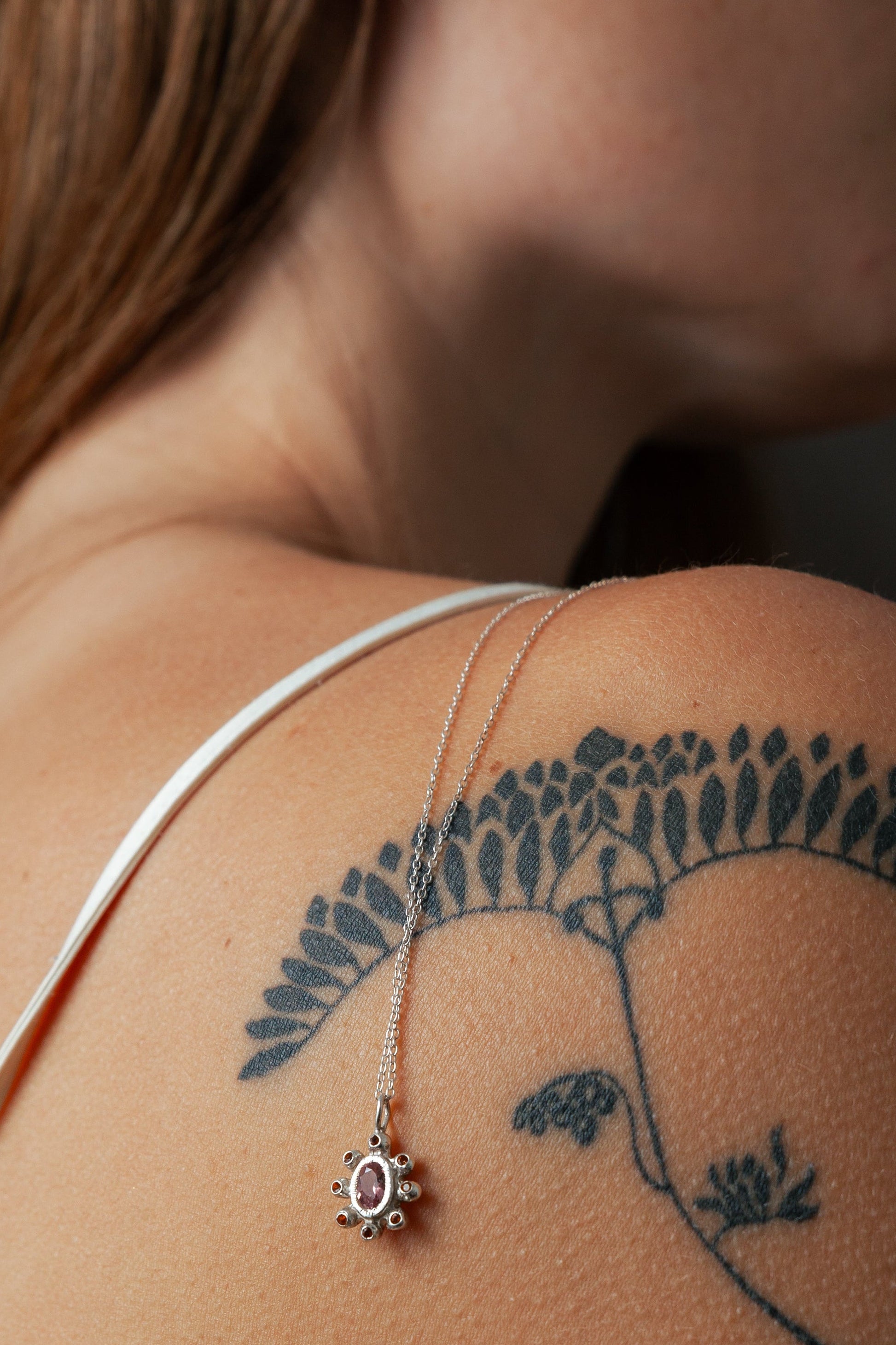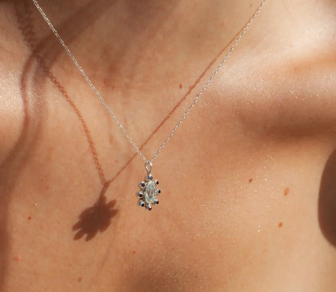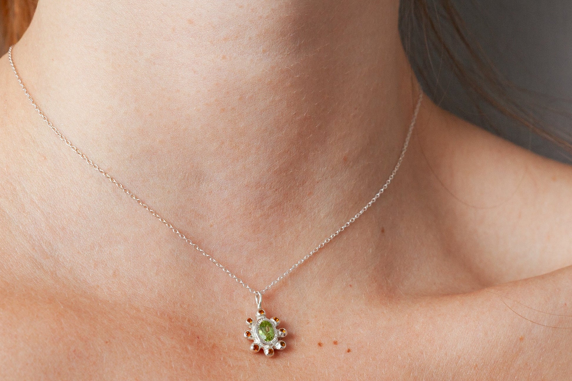 התליון נוצר בטכניקת פיסול בשעווה, נעשה מכסף 925 ומשובץ בעבודת יד באבני חן שונות ומגוונות.