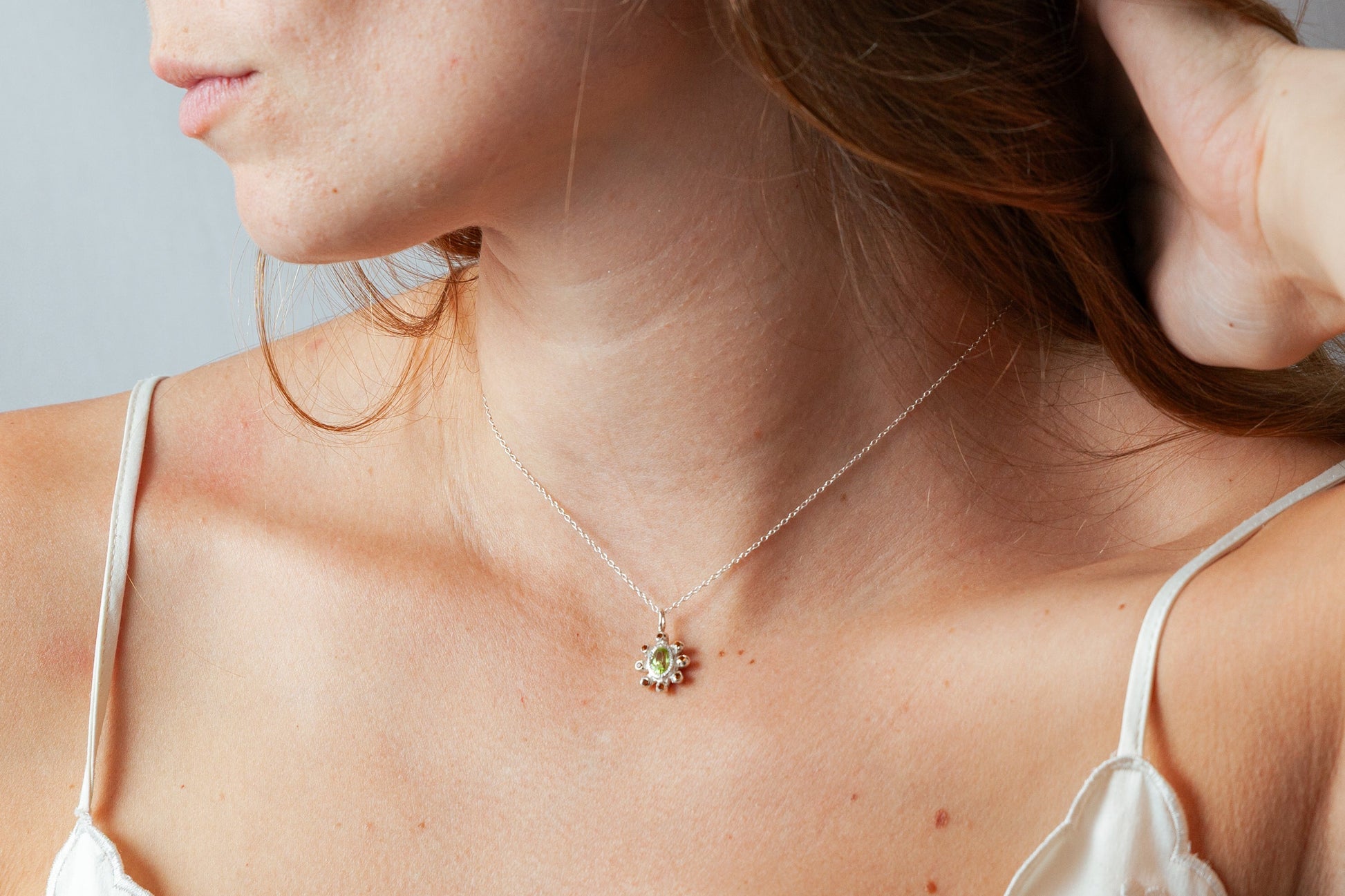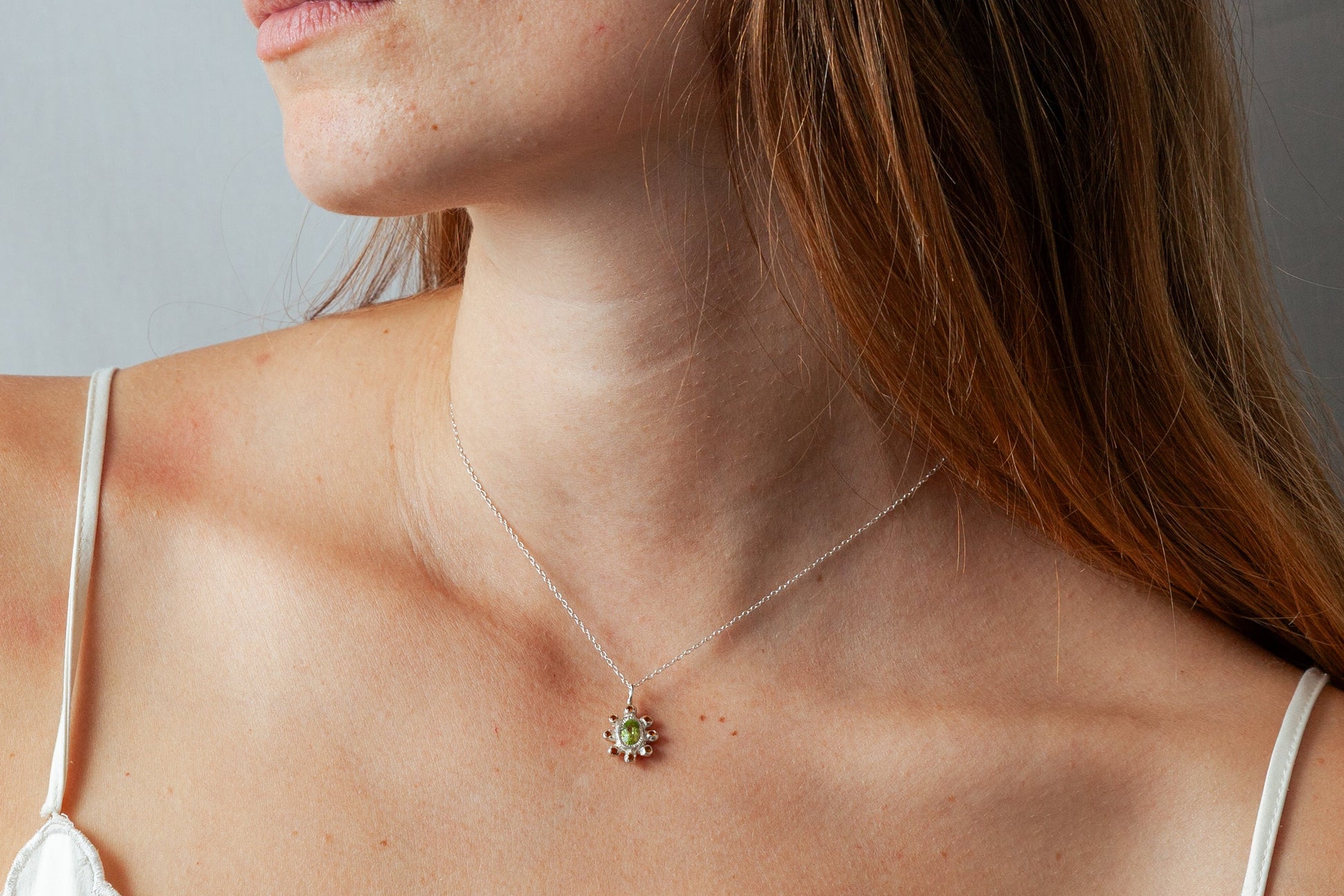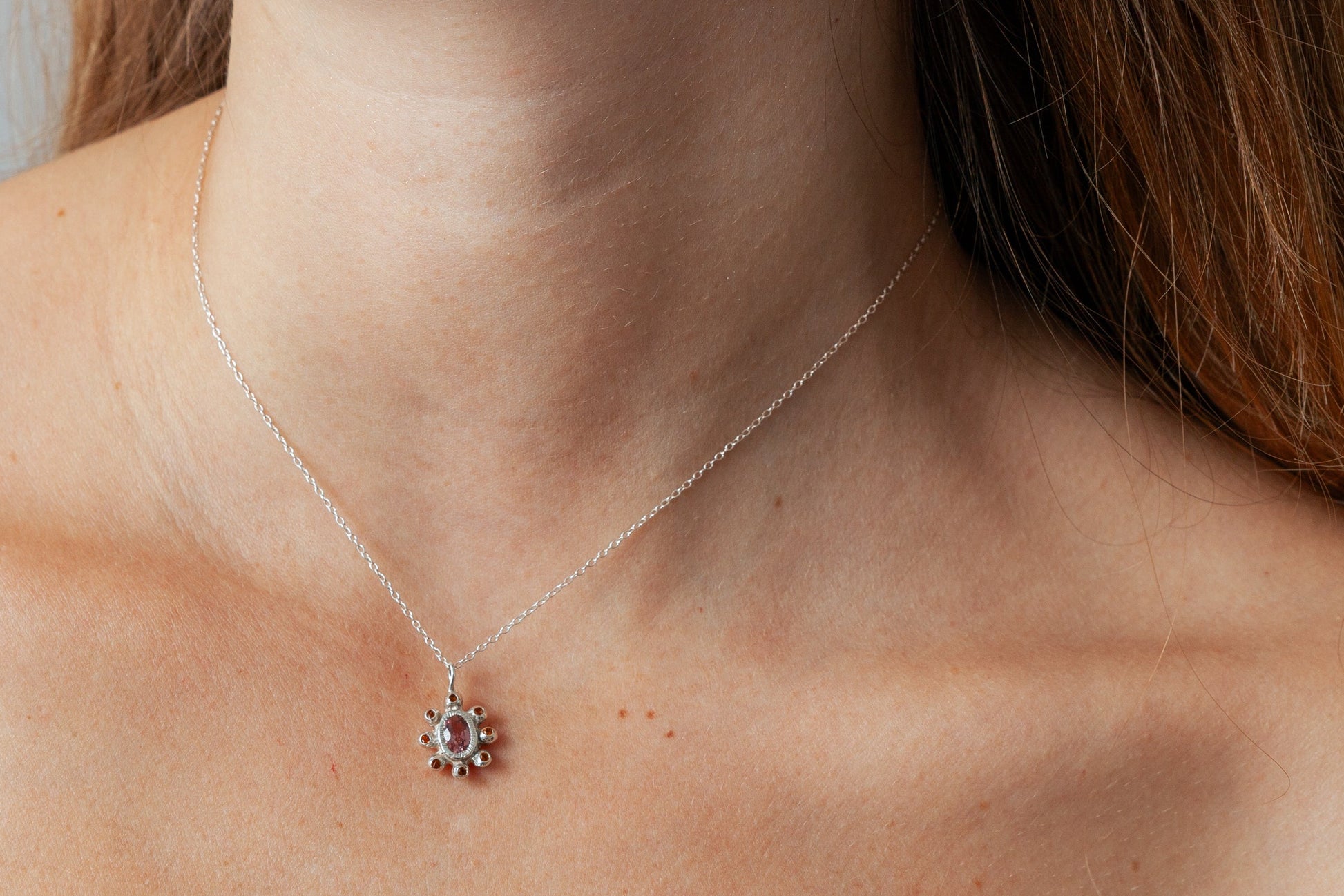 התליון נוצר בטכניקת פיסול בשעווה, נעשה מכסף 925 ומשובץ בעבודת יד באבני חן שונות ומגוונות.